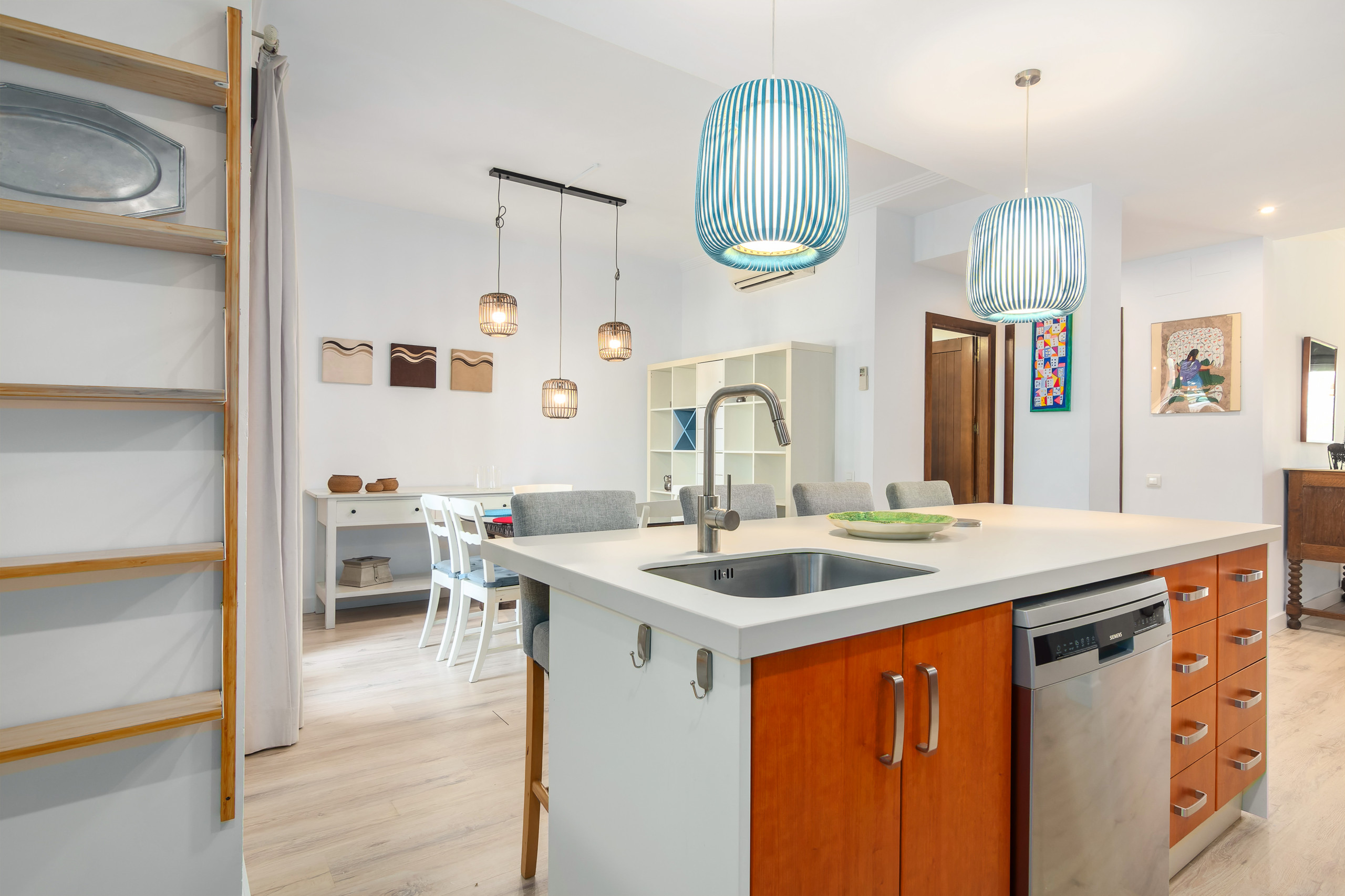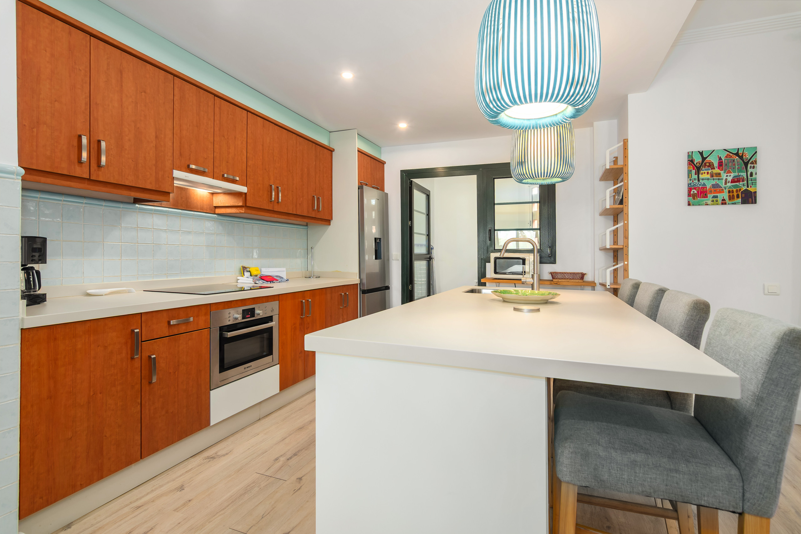 A habitação está totalmente equipada com ar condicionado, aquecimento por bomba de calor, WiFi e uma cozinha americana completamente equipada com eletrodomésticos como máquina de lavar, máquina de lavar louça, forno, micro-ondas e máquina de café. A zona de estar inclui TV e ferro de passar para maior comodidade.
