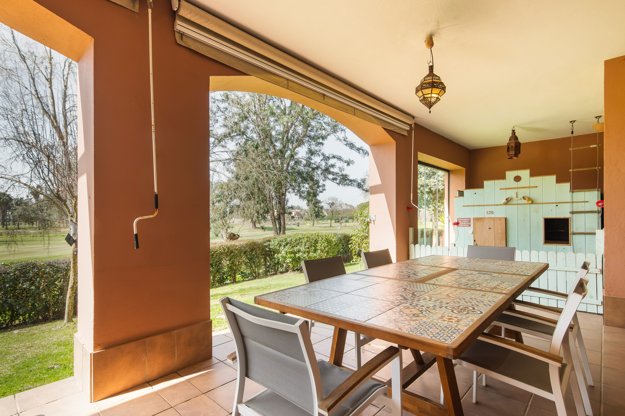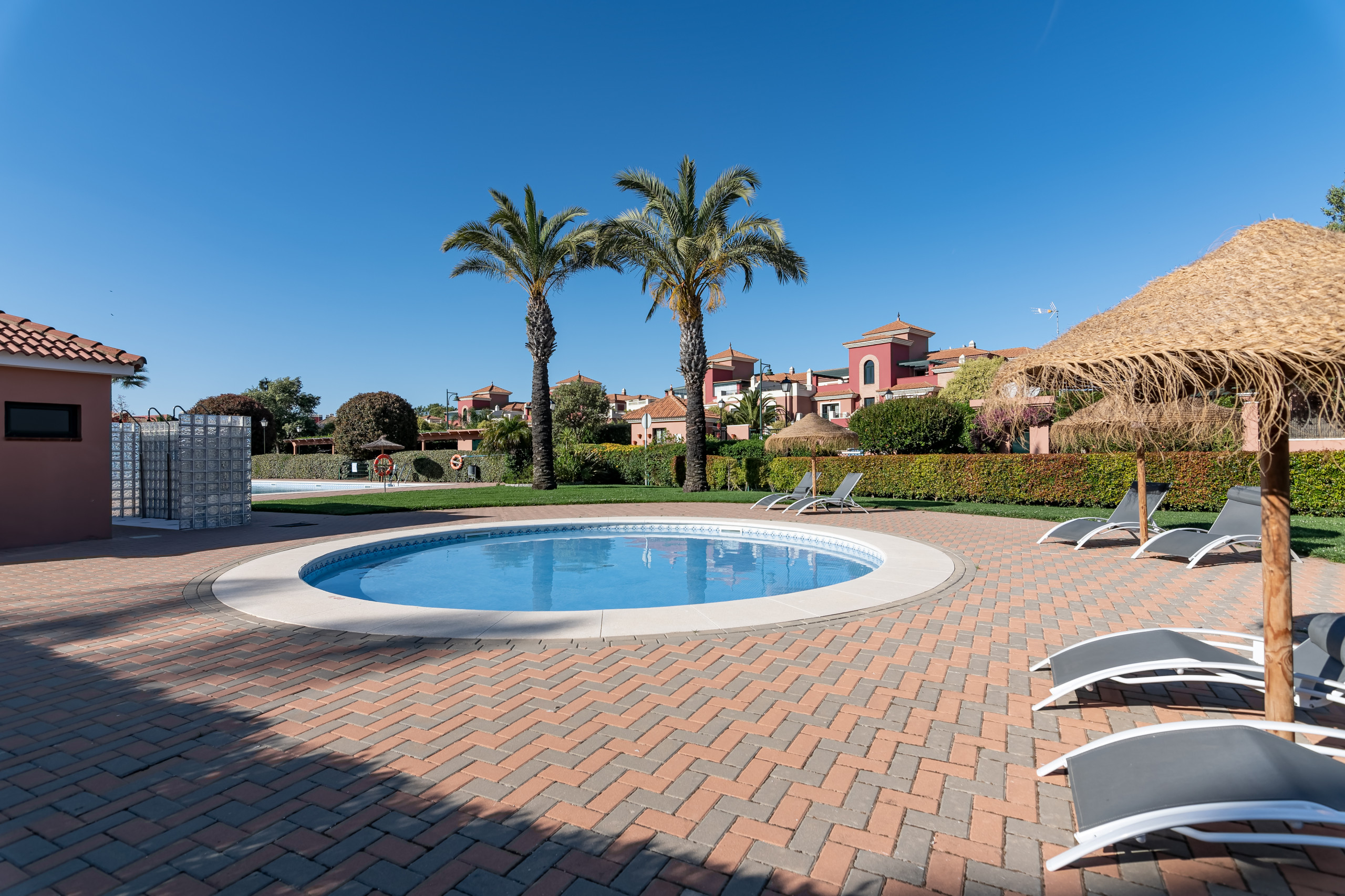 No exterior, desfrutará de um terraço de 62m² com jardim mobilado e parcela vedada. O empreendimento oferece piscina partilhada, zona infantil, campos de ténis e padel, perfeitos para o entretenimento familiar.